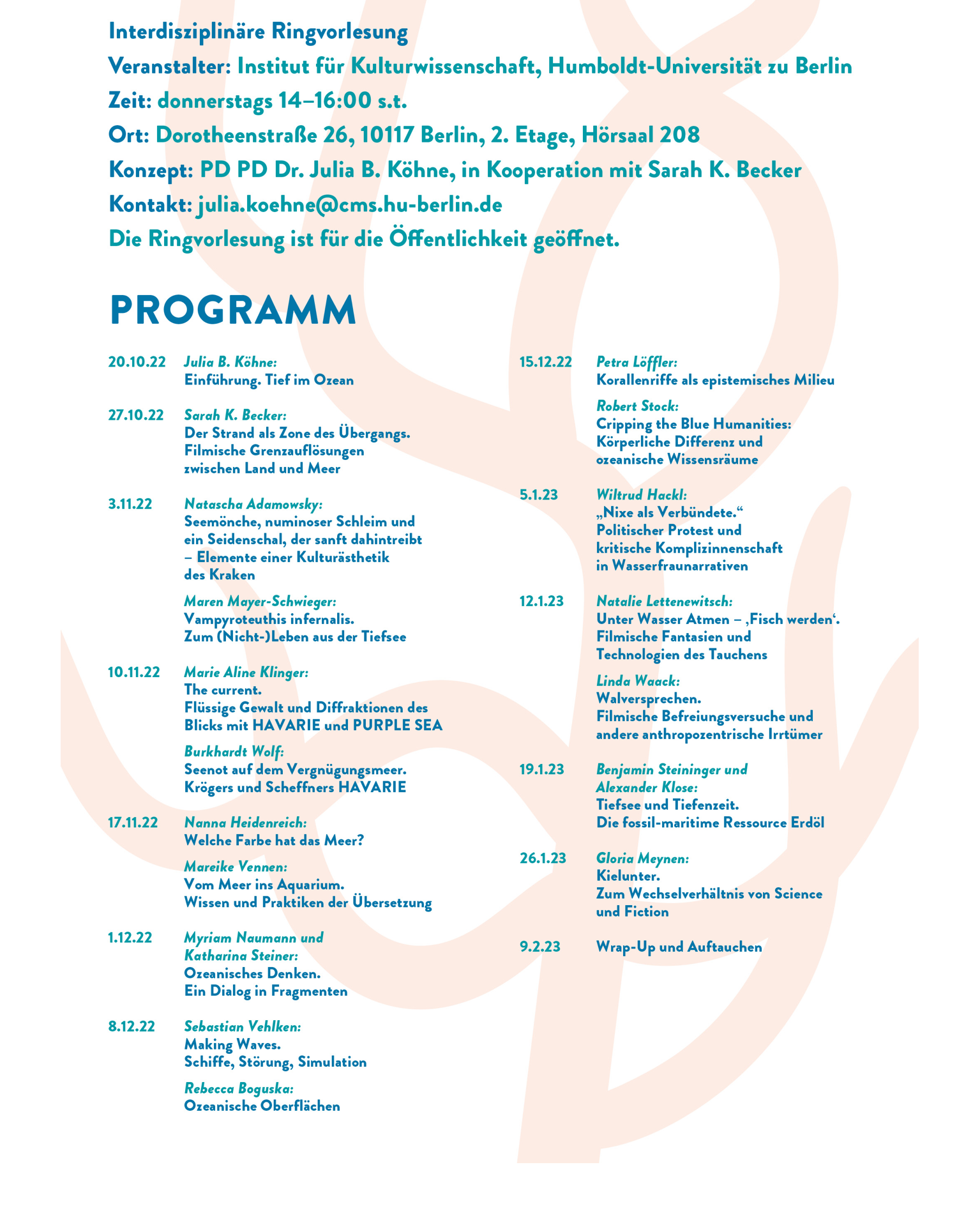 HU Berlin im Rahmen der Ringvorlesung TIEF IM OZEAN / Konzept: Julia B. Köhne in Kooperation mit Sarah K Becker